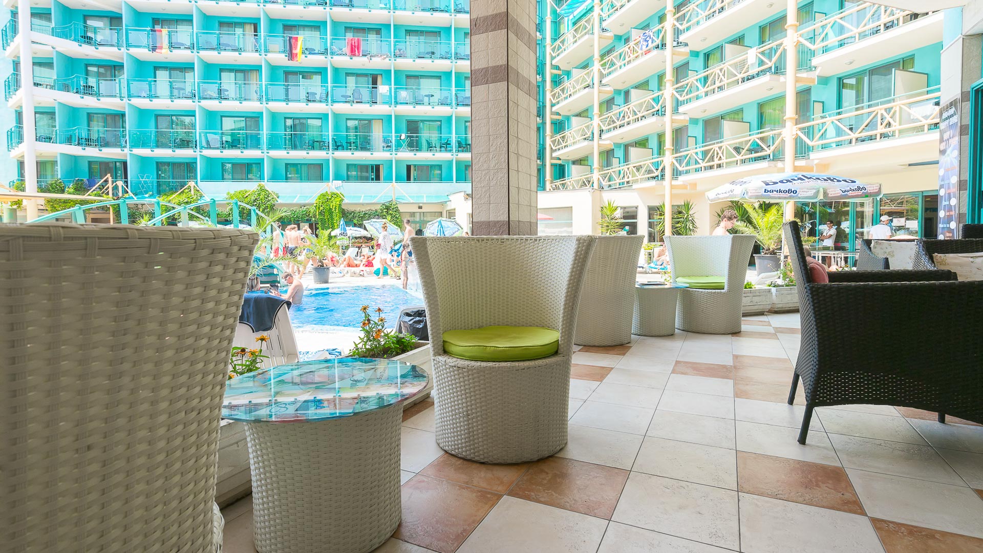 Hotel Diamond har et indbydende poolområde, hvor du kan slappe af i solen og tage en forfriskende dukkert i løbet af dagen. Poolområdet fungerer som et naturligt samlingspunkt, og hotellets faciliteter er indrettet med fokus på komfort og bekvemmelighed. Den centrale beliggenhed gør det let at komme rundt i Sunny Beach og få mest muligt ud af ferien.