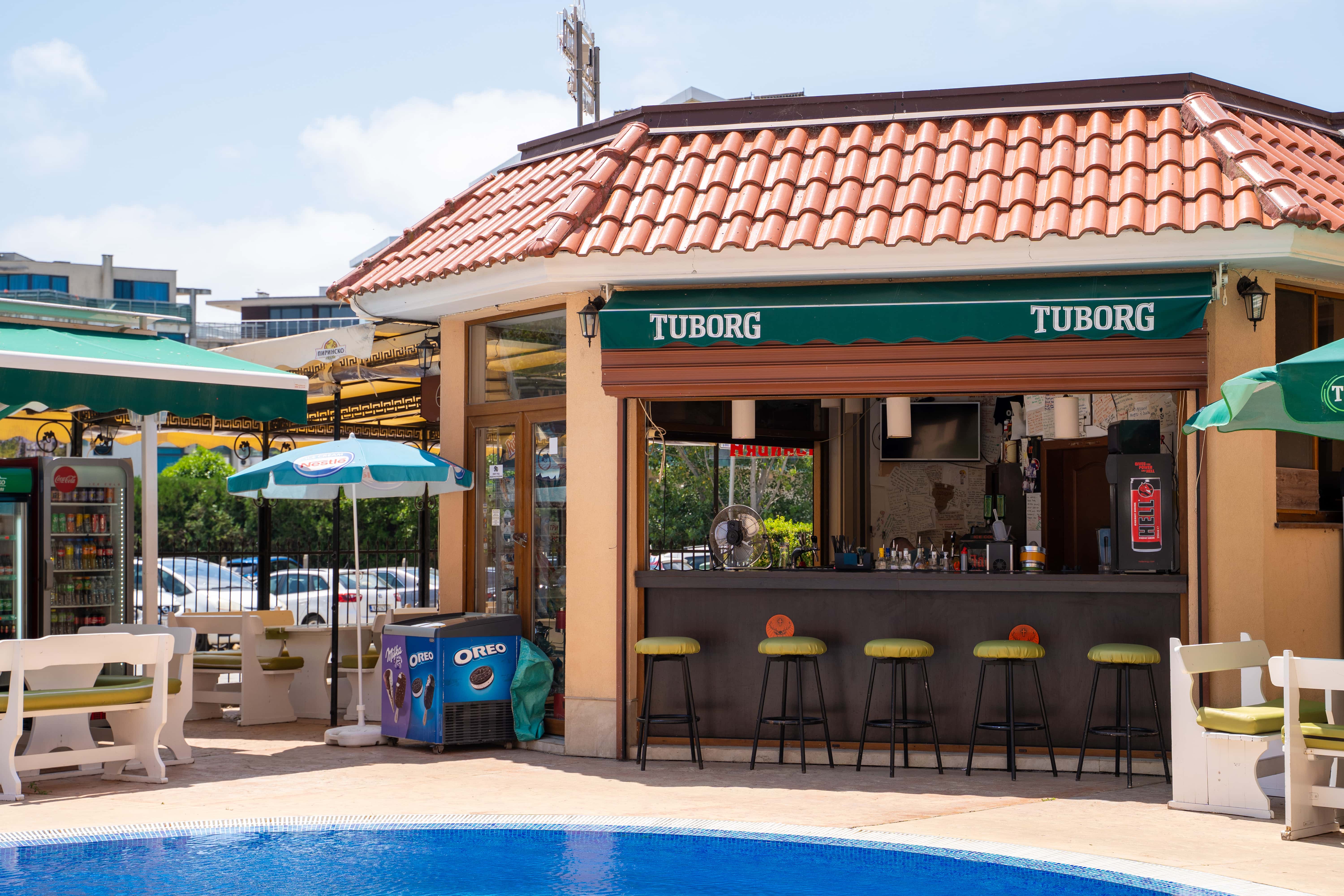 Hotellet har et indbydende poolområde omgivet af grønne træer og palmer, hvor du kan slappe af og nyde solen. Poolen er fyldt med naturligt mineralvand, som giver en frisk og behagelig badeoplevelse. Der er også børnepool til familiens mindste samt en poolbar, hvor du kan bestille forfriskende drikke og snacks i løbet af dagen.