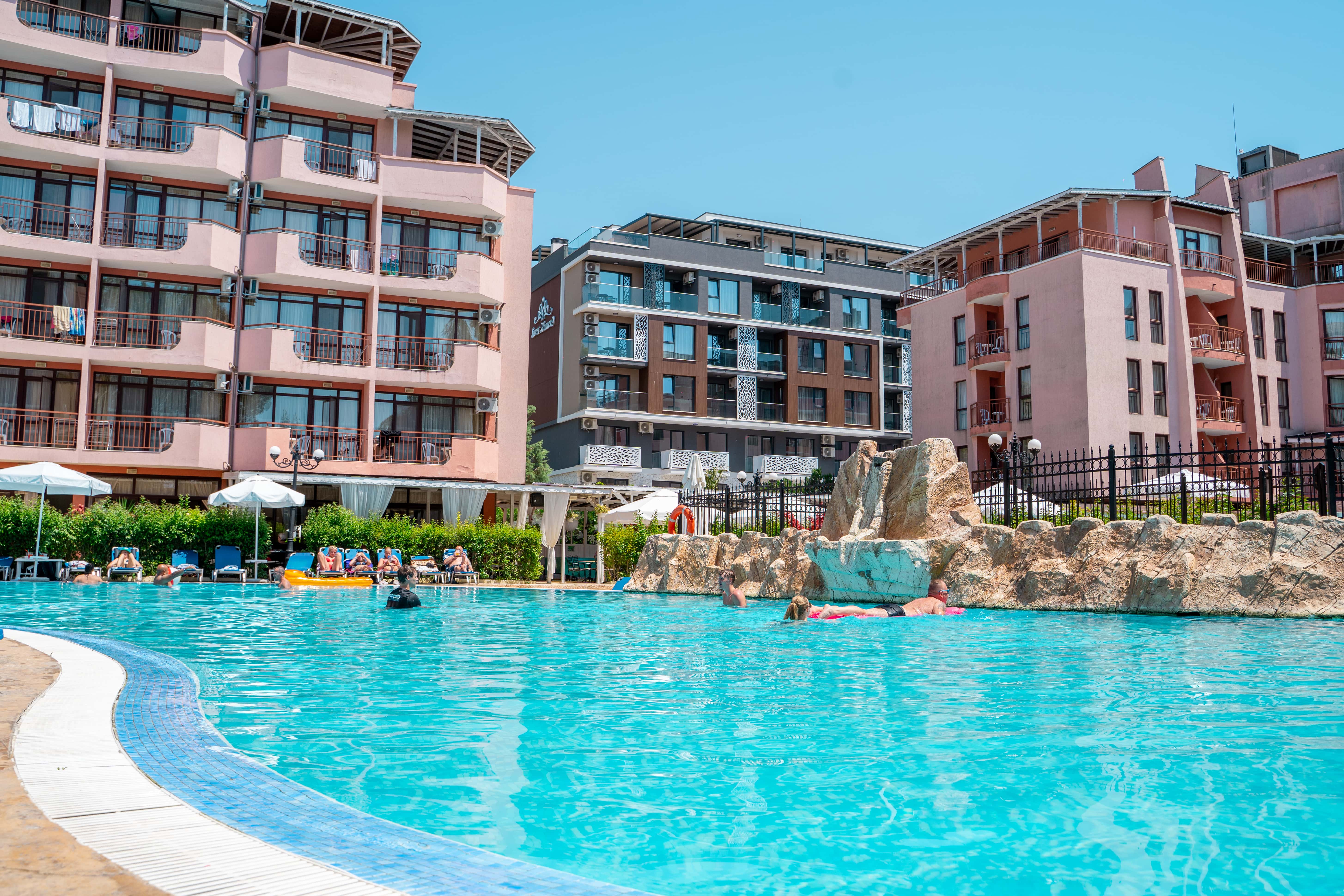 Izola Paradise er et populært og moderne hotel med fantastisk beliggenhed i hjertet af Sunny Beach. Her bor du i gåafstand til både strand, shopping og Flower Street – byen hvor barer, restauranter og underholdning ligger side om side. Hotellet er et af Uptours’ mest efterspurgte i Sunny Beach og et oplagt valg for dig, der ønsker en ferie med god stemning, sol og afslapning tæt på alt.