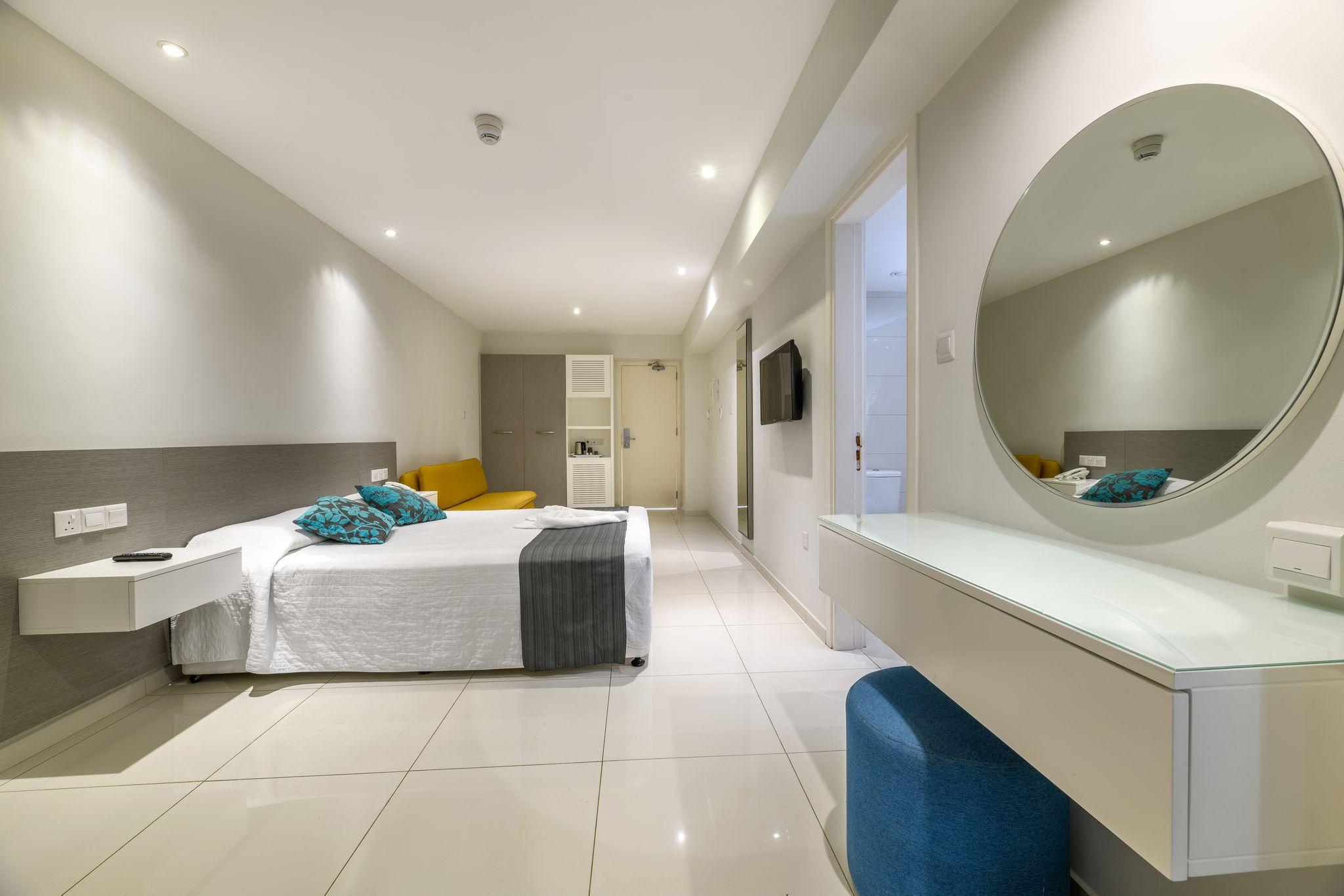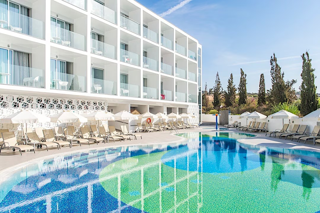 River Rock Hotel er et moderne og stilfuldt hotel med fantastisk beliggenhed midt i Ayia Napas centrum. Her bor du kun få minutters gang fra restauranter, shopping og byens stemningsfulde gader – og med den populære sandstrand Grecian Bay lige i nærheden. Hotellet passer perfekt til både par, familier og vennegrupper, der ønsker en ferie med komfort, nærhed og bekvemmelighed.