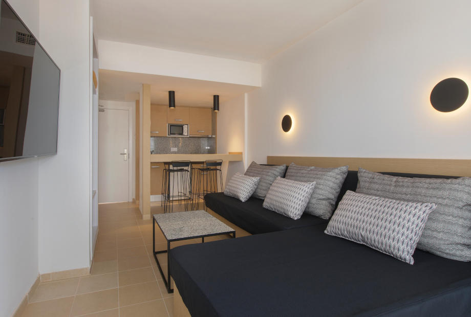 HM Martinique tilbyder både rummelige lejligheder og moderne dobbeltværelser. Lejlighederne har separat soveværelse, stue, lille køkken og balkon – ideelt for familier eller gæster, der ønsker lidt ekstra plads. Dobbeltværelserne er perfekte til par, der foretrækker en mere enkel og hotelagtig løsning.
