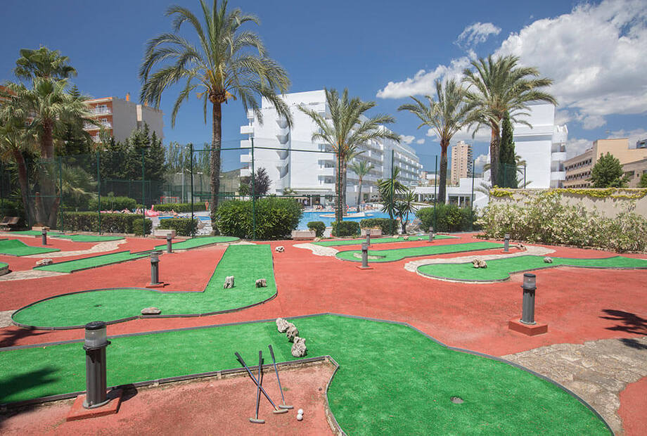 Hotellet byder også på masser af muligheder for at være aktiv. Der er både padelbane, tennis, minigolf, fodboldbane og et moderne fitnesscenter. For børn og familier er der rig plads at boltre sig på, og området omkring hotellet er både trygt og livligt – perfekt til en familieferie på Mallorca.