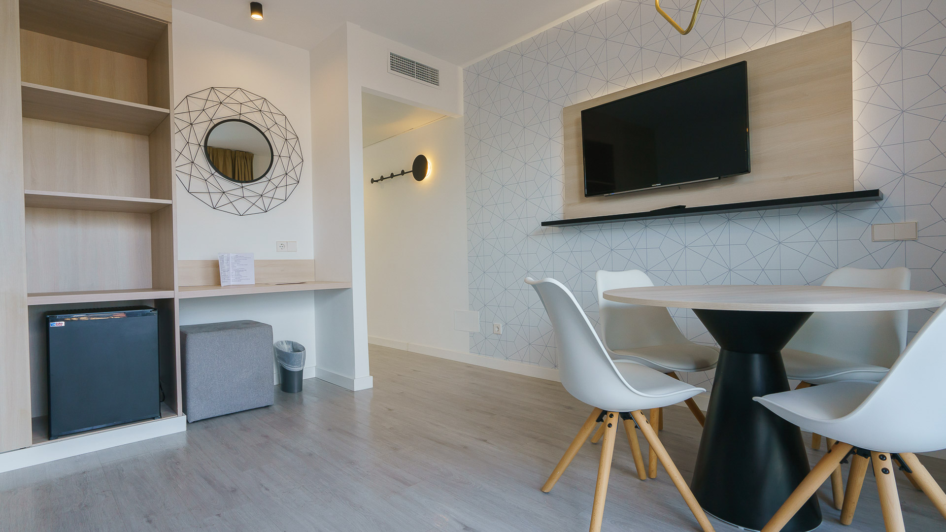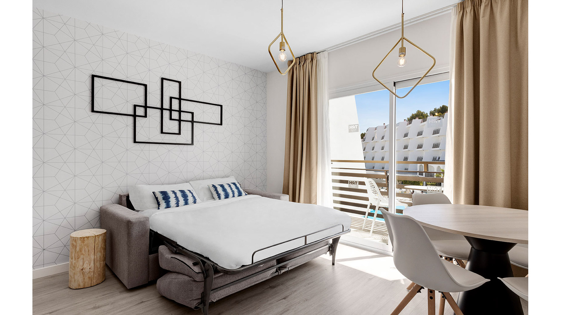 Studios på TRH Suites Magaluf har plads til 4 personer, hvor man kan bo 2-4 personer. Studios er totalt nyrenoveret og er både rumlige, stilrent indrettede og har praktisk skabsplads til tøj og medbragt bagage. Alle værelser har et lille køleskab, badeværelse og et stort hverdagsrum. Alle studios har desuden egen balkon med tilhørende borde og stole, hvor du kan nyde den varme sommerbrise samtidigt med du sipper af en kølig forfriskning. Bemærk, at der tilkommer tomsengstillæg, hvis ikke man fylder værelset med 4 personer.