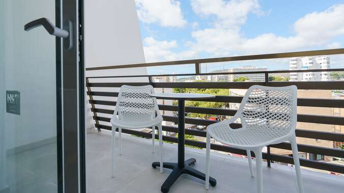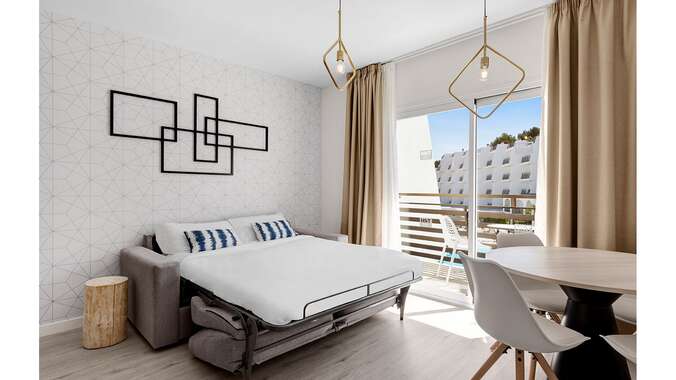 Studios på TRH Suites Magaluf har plads til 2-4 personer. Studios er totalt nyrenoveret og er både rumlige, stilrent indrettede og har praktisk skabsplads til tøj og medbragt bagage. Alle værelser har et lille køleskab, badeværelse og et stort hverdagsrum. Alle studios har desuden egen balkon med tilhørende borde og stole, hvor du kan nyde den varme sommerbrise samtidigt med du sipper af en kølig forfriskning.